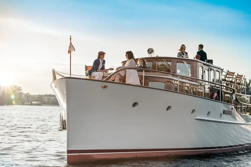 Discover Berlin's Spree River landmarks aboard the all-electric motor yacht, Fitzgerald. Enjoy the option to buy refreshments like chilled drinks, coffee, and snacks from the friendly crew.