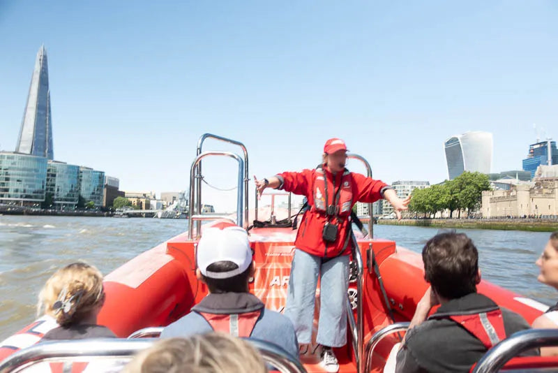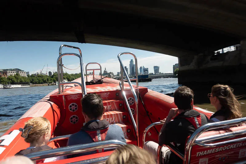 - 一旦我们穿过塔桥,船长终于全速前进!这真是令人兴奋的 沿着泰晤士河快速前行,欣赏美丽的英国城市风光 all around us. This part lasts until Greenwich,与 short breaks between the high-speed periods.
