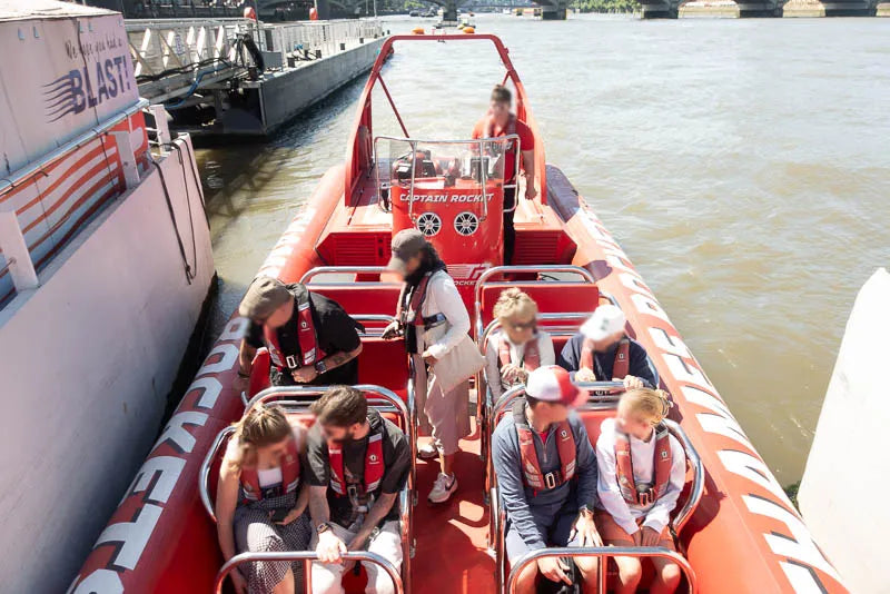 - 泰晤士河火箭的快艇具有 12人容量, with 舒适的座椅 配备有 安全手柄 抓住。