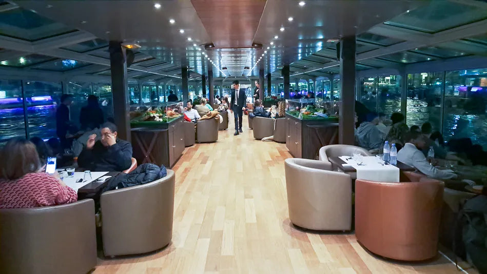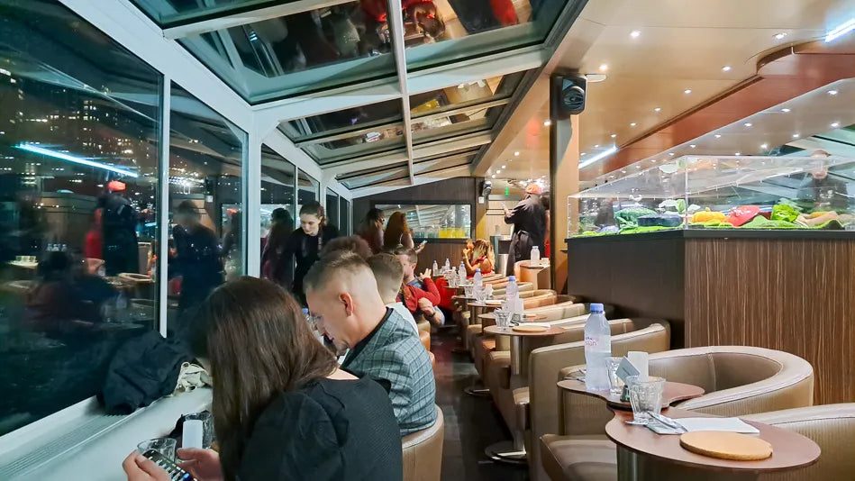 - 虽然不如我们前三名竞争者那么高端,但这艘船为繁忙的晚餐夜提供了一个不错的氛围,座位朝向两侧,提供了壮观的景色。